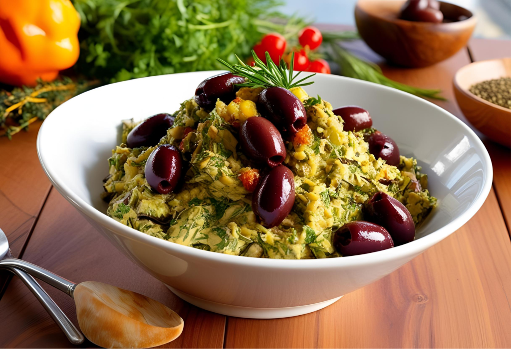 A mainstay of Mediterranean mezze, melitzanosalata is Greece’s cherished smoky eggplant dip, which combines charred eggplant with lemon, parsley, olive oil, and garlic for a colourful taste. Modern variations frequently incorporate Kalamata olives, which offer a salty flavour that delightfully contrasts with the dip’s creamy texture, while classic recipes keep it simple. The eggplants are usually peeled, drained, and mashed with aromatics after being roasted whole until charred, either over an open flame for smokiness or baked for convenience.