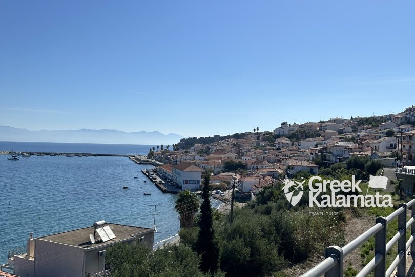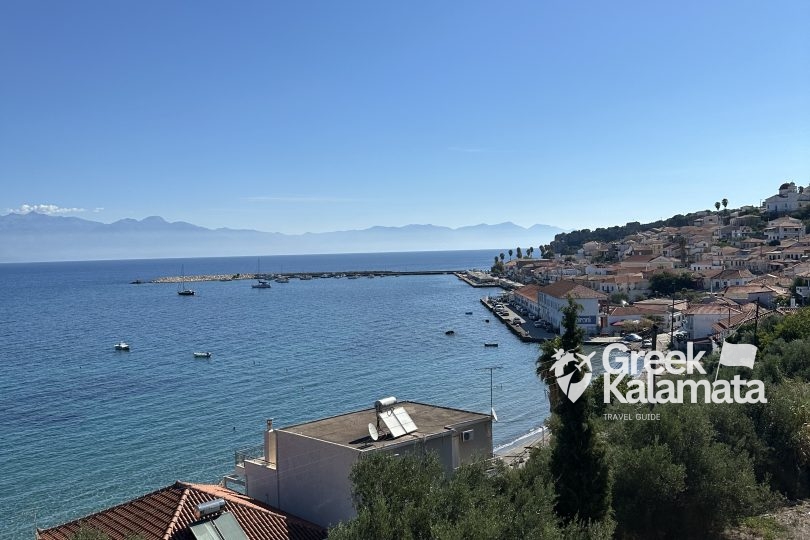 The town’s most iconic landmark is the Venetian-era Koroni Castle. This pristine fortress dates back to the 13th century, offering breathtaking sea views and housing a monastery within its walls. Below the castle, the picturesque waterfront is lined with colourful houses, traditional tavernas, and fishing boats, creating a serene and inviting atmosphere. This town is also famous for its beautiful beaches, including Zaga and Memi, known for their beautiful sands and crystal-clear waters, which are ideal for swimming and relaxation.